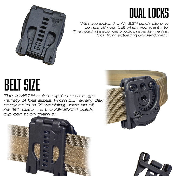 빠른 릴리스 부착 시스템: AIMS™ 회전/빠른 릴리스를 통해 최대 2인치 너비의 벨트 또는 공구 조끼, 가슴 리그, 앞치마, 팩 등의 Atlas 46 플랫폼에 부착할 수 있습니다.