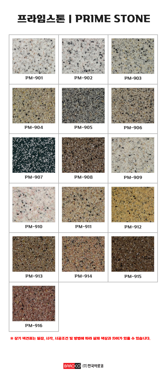 고급 아크릴릭 폴리머, 천연 규사, 칼라 규사를 주성분으로 하는 뿜칠 마감도료로 특히 칼라 규사는 당사에서 직접 수용성 안료로 고온에서 착색하여 변색, 탈색 및 황변이 거의 없는 고급 뿜칠 마감도료입니다.