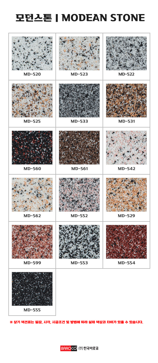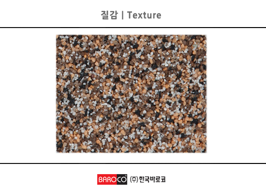 국내 외벽단열시스템(E.I.F.S) 마감도료 중 일반적으로 가장 많이 사용되는 마감도료로 고급 아크릴릭 폴리머, 천연 규사, 칼라 규사를 주성분으로 하며 특히 칼라 규사는 당사에서 직접 수용성 안료로 고온에서 착색하여 변색, 탈색 및 황변이 거의 없는 고급 미장 마감도료입니다.