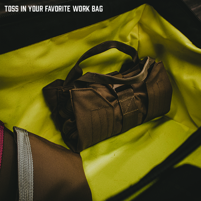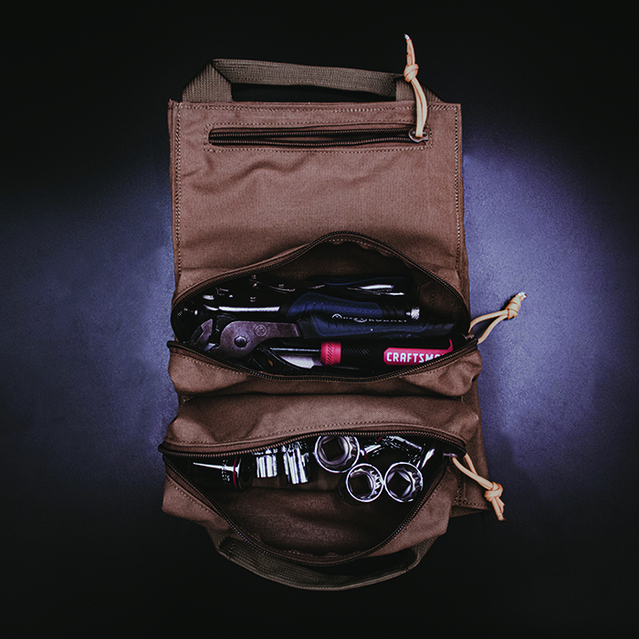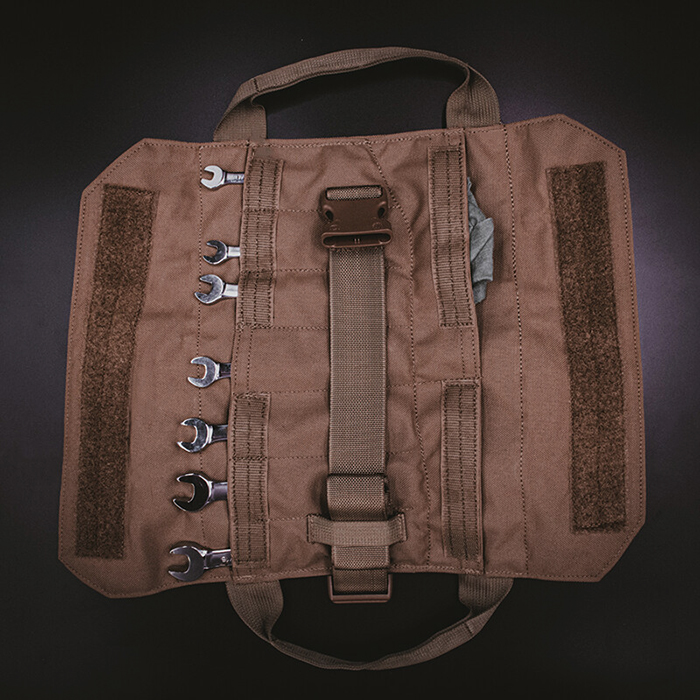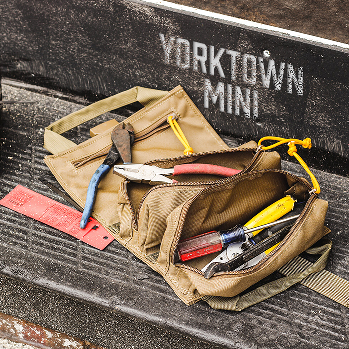 컴팩트하고 필요한 것을 휴대할 수 있도록 설계되었습니다. 필수 도구를 정리하고 YTR Mini™와 함께 사용할 준비를 하세요. 전면에 2개의 포켓이 있어 수공구 또는 기타 필수 도구를 휴대할 수 있습니다. 전면의 지퍼 포켓 1개에는 전화기나 여분의 걸레를 넣을 수 있는 충분한 공간이 있습니다. 뒷면에 7개의 렌치 슬롯이 있어 렌치를 정돈된 상태로 보관할 수 있습니다. 헝겊, 니트릴 장갑 또는 작업 중 느슨한 부품을 위한 뒷면의 작은 슬립 포켓 2개.