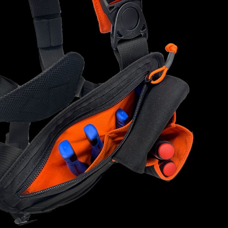 싱글 카고 포켓 도구 상자 패널은 대형 카고 포켓과 도구 및 연필을 위한 슬롯을 결합한 것입니다. 또한 자석 패널이나 기타 추가 기능을 추가할 수 있도록 두 개의 후크 및 루프 AIMS 슬롯이 포함되어 있습니다.